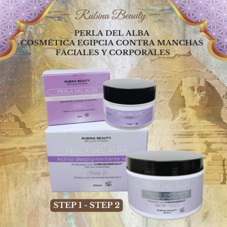 - Step 1 (50 ml): activo despigmentante con SPF 20 para iniciar la rutina